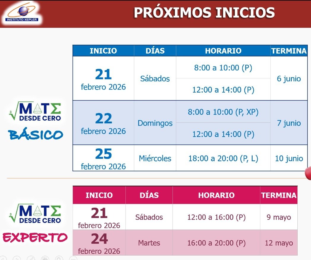 12:00 - 14:00 (presencial, únicamente en Iztacalco).